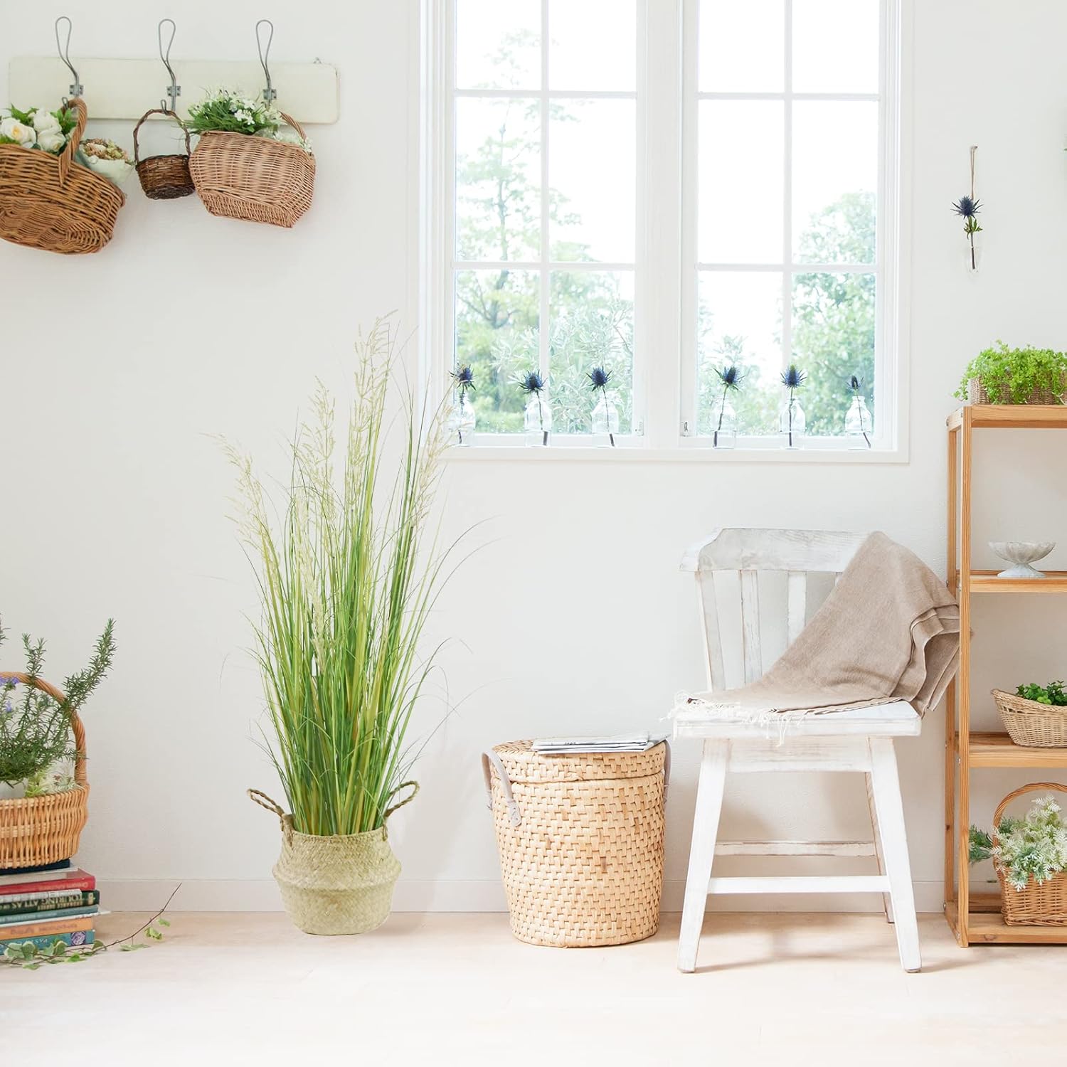 - 2.Made of PVC material, our artificial grass plants will neither wither nor fade and no odor, lifelike as the real plant. The flower and grass pots are strong and durable.