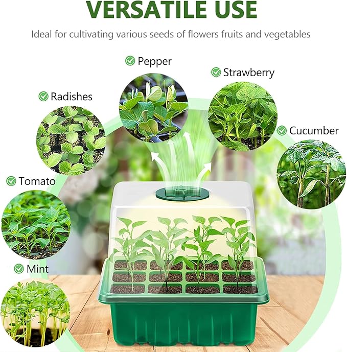 - 【Grow Health and Efficient】Our Seed Starter kits are the ideal size for the growth of small seeds of various plant seedlings. For vegetables, strawberries, flowers, fruits, and other plants. It can artificially control the light quality, intensity, and cycle; humidity, temperature, keep plants in the best growing environment all the time, effectively shorten the growth time, and improves crop yield and quality. An ideal gift for the garden starter.