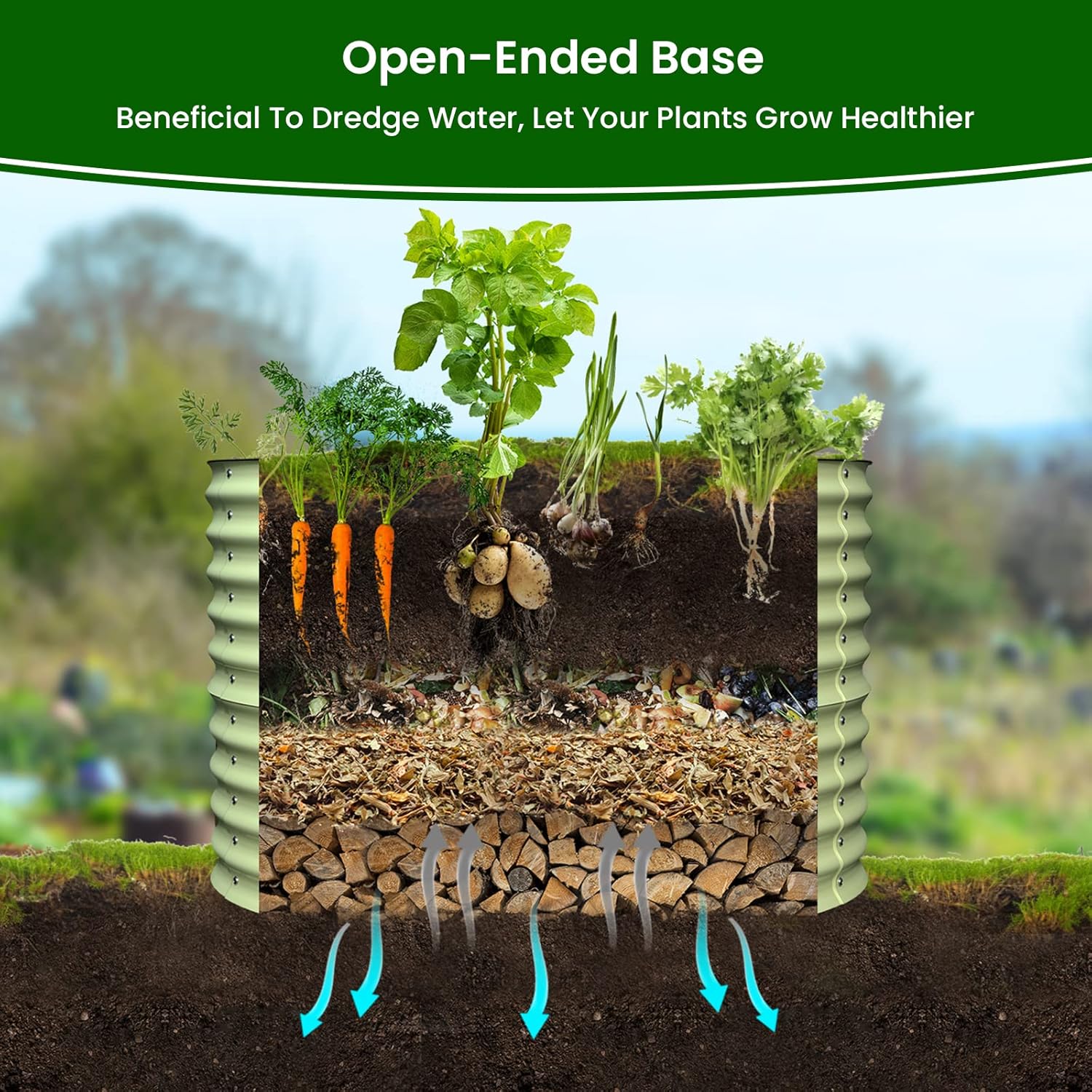 Olle 32" Tall, Raised Garden Beds Outdoor for Vegetables, Round Galvanized Raised Garden Bed, Metal Garden Boxes Outdoor Plater Box, Sage Green