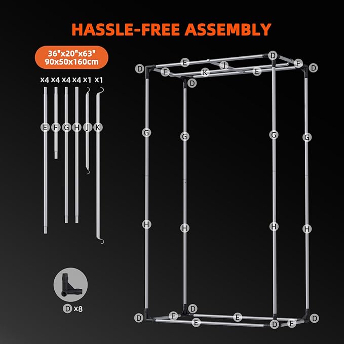 - TOOL-FREE SETUP IN MINUTES: Connect the metal frame to the corner adapter, pull the tent on, add the floor tray and hanging bars, and start growing faster with ultra-stable construction