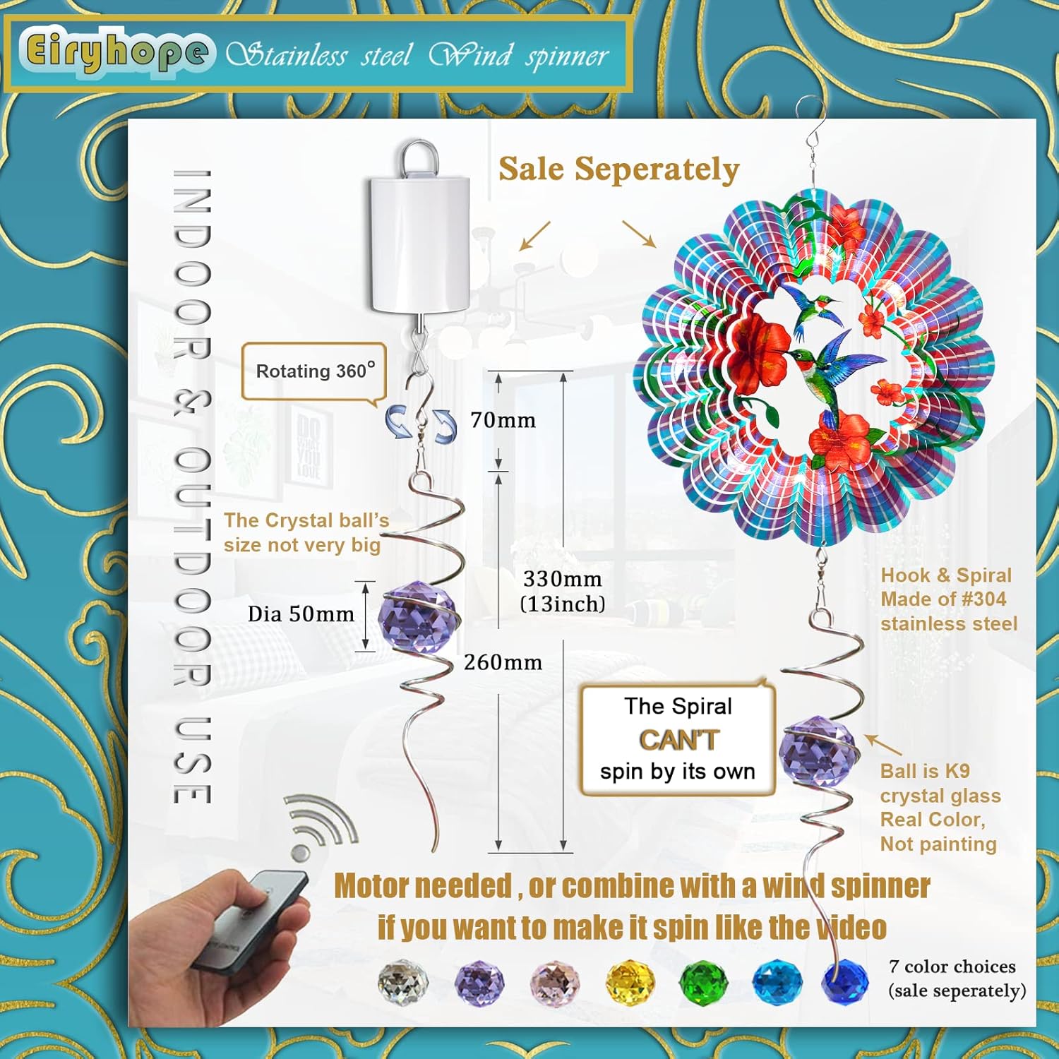 - 【 3D Wind Spinners Stabilizer 】The wind spinner spiral with a 360° swivel hook is easy to hang. Our wind spinner crystal tails are gorgeous additions to our range of 3D wind spinner accessories. Attached to the bottom of kinetic wind spinner, which adds another dimension to the overall look, also helps provide stability on windy days. Since the Wind Spinner Stabilizer Spiral Tail can't spin on its own, add a wind spinner motor (not included) to help it spin.