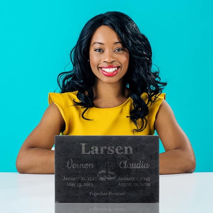 - MADE FOR TWO MEMORIAL PLAQUE: This gravestone memorial is made of a natural black granite that is built to last. Place it in your backyard, with a stone facade, or at a graveside, in a memorial garden or in the grass. (This plaque is not meant to be walked on.) If you are placing this in a cemetery, please be sure to check their requirements.