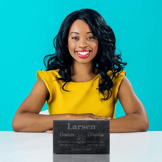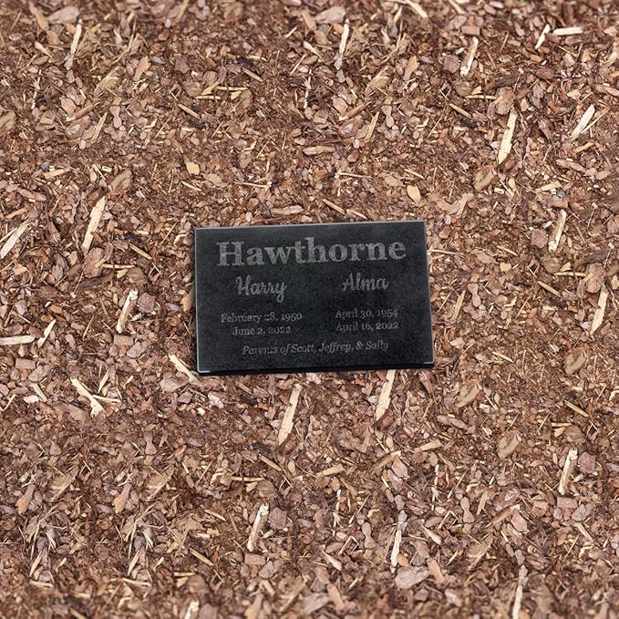 - MADE FOR TWO MEMORIAL PLAQUE: This gravestone memorial is made of a natural black granite that is built to last. Place it in your backyard, with a stone facade, or at a graveside, in a memorial garden or in the grass. (This plaque is not meant to be walked on.) If you are placing this in a cemetery, please be sure to check their requirements.