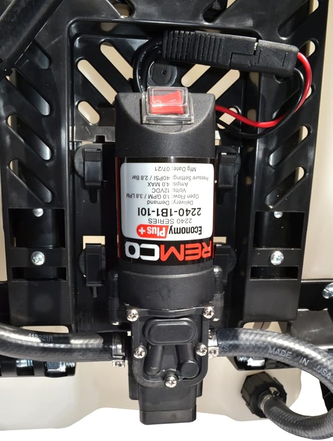 - PRODUCT SPECIFICATIONS: This 5-gallon tank garden sprayer delivers 45 PSI up to 1 gallon per minute. It is equipped with an AC charger that hosts an in-built storage compartment and a light to indicate when the battery is fully charged. It weighs 12.00 LBS.