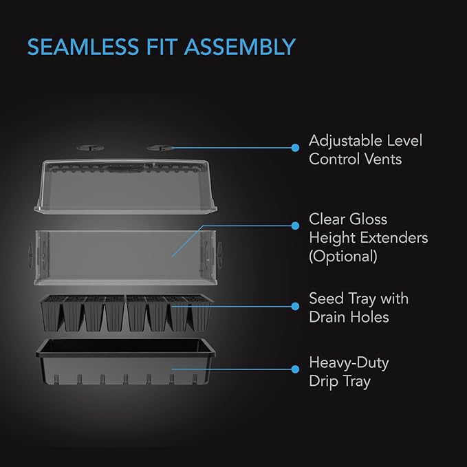 - Optional height extension panels with more adjustable vents raise the dome for propagation projects.