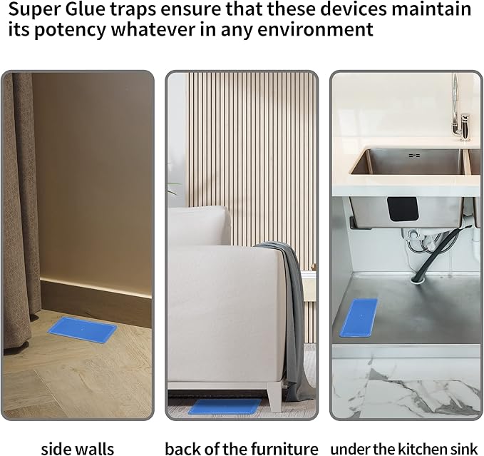 - Wide Application: These 5" x 10" trays come out as pairs, traps can be placed in areas where the mice are most likely to run, along walls, or skirting boards where pests are active. Ideal for the basement, residences, warehouses, restaurants, houses, indoor, industrial buildings, and attic use. Effective in catching everything from snakes, mice, rats, lizards, crickets, scorpions, and spiders.