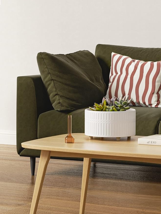 - Modern Minimalist Succulent Pots: Matte-white, ribbed stoneware set of 2 blends with Scandinavian, farmhouse, boho and mid-century décor. Instantly elevates kitchen windowsills, living-room shelves, office desks or bathroom counters
