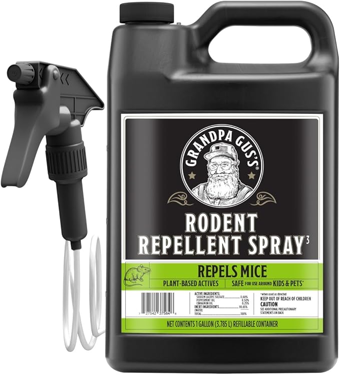 Grandpa Gus's Rodent Repellent Spray with Sprayer, Natural Peppermint & Cinnamon Oils Repel Mice and Stop Rats, 1 Gallon (Pack of 1)