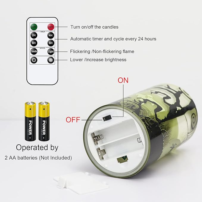 - MATERIAL: High quality unscented real wax with green glass, diameter in 3 inches, and height in 4, 5, 6 inches, each candle requires 2 type AA batteries (not included).