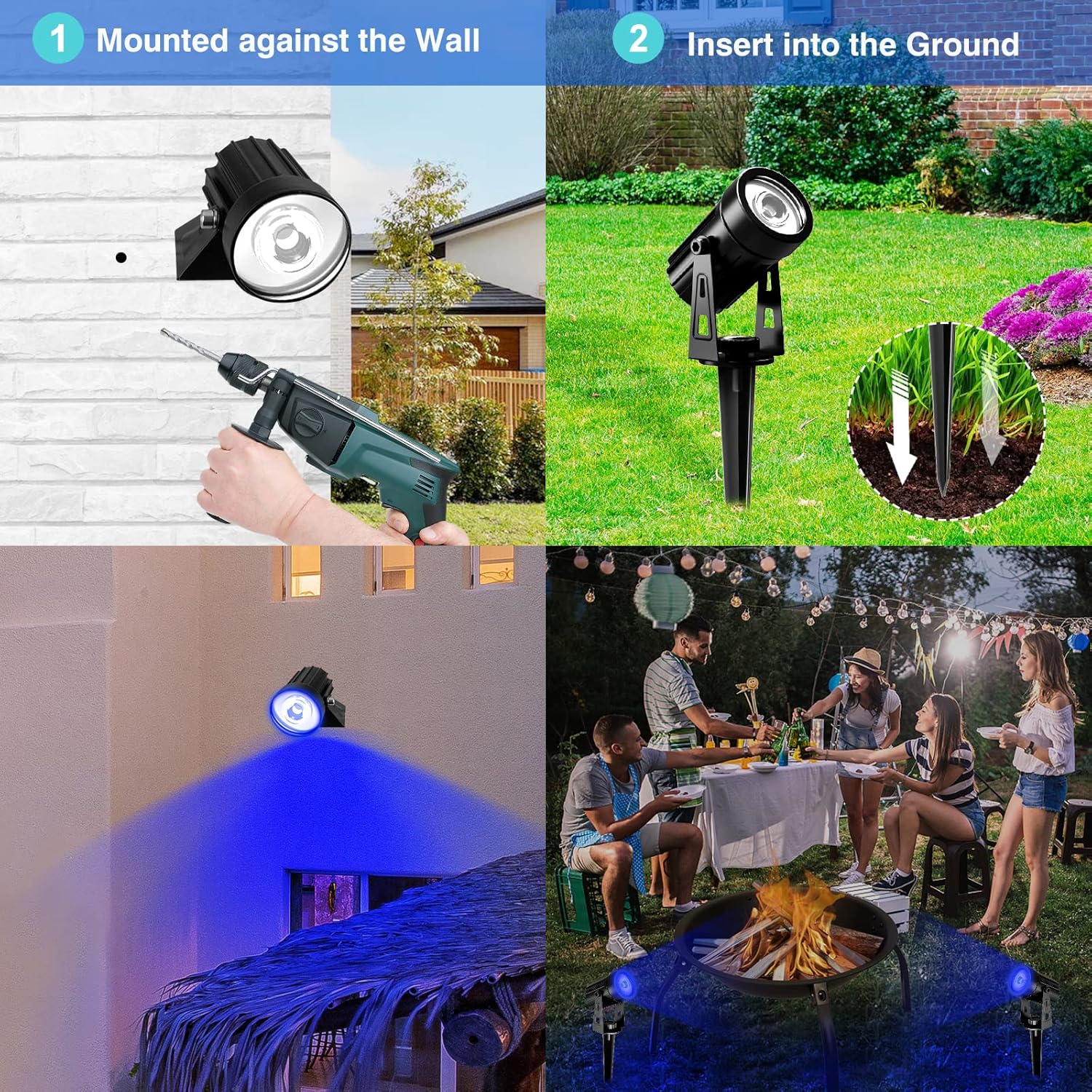 T-SUNUS 4 Pack Solar Landscape Spotlights - Blue, Waterproof IP65, 9.8ft Cable, 2000mAh Solar Panel, Auto On/Off for Garden, Driveway, Pathway, Pool Area