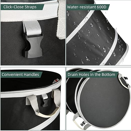 - 【CAMPING TRASH CAN】Use as collapsible trash can at party, outdoor camping or rv with trash bag in it, take out the trash easily and keep your can always like new; Foldable can is convenient to put in the trunk to save space