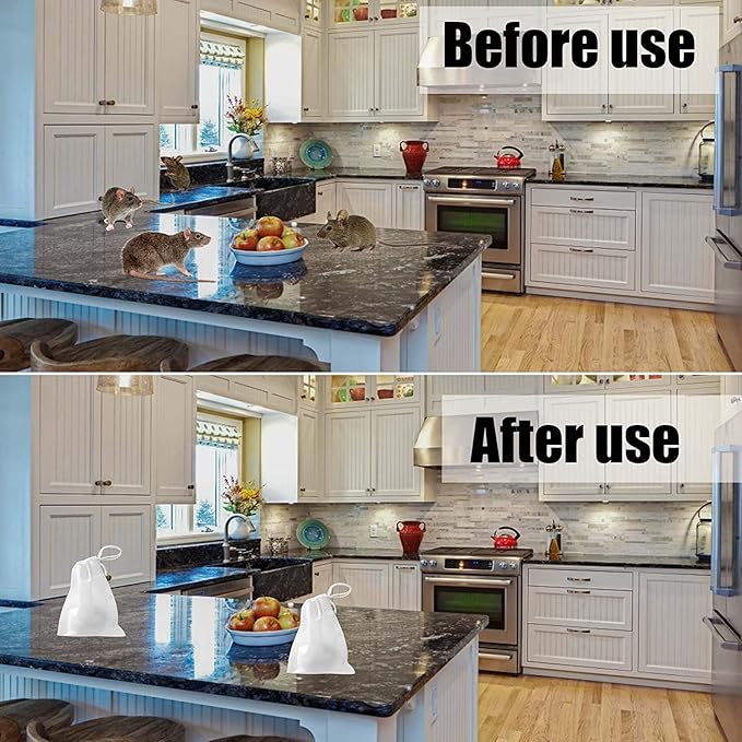 - Easy to Use --- Simply take the natural rat repellent out of the package box and tear off the sealed plastic packaging. Then place or hang the mice repellent in a confined space where mice like to stay, such as kitchen, garages, cars engine, barns, etc. The unpleasant odor will keep them away.