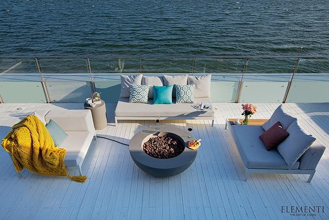 Elementi | Lunar Gas Fire Pit Cast Concrete 42" Round Fire Table, Outdoor Fire Pit Electronic Ignition | Canvas Cover, Lava Rock Included | Light Gray (Propane Gas)