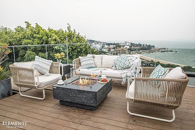 Elementi | Manhattan Gas Fire Pit Cast Concrete 36" Square Fire Table, Outdoor Fire Pit Electronic Ignition | Canvas Cover, Lava Rock Included | Dark Gray (Propane Gas)