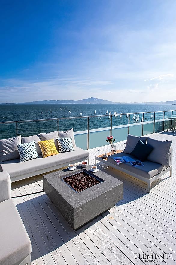 Elementi | Manhattan Gas Fire Pit Cast Concrete 36" Square Fire Table, Outdoor Fire Pit Electronic Ignition | Canvas Cover, Lava Rock Included | Light Gray (Natural Gas)