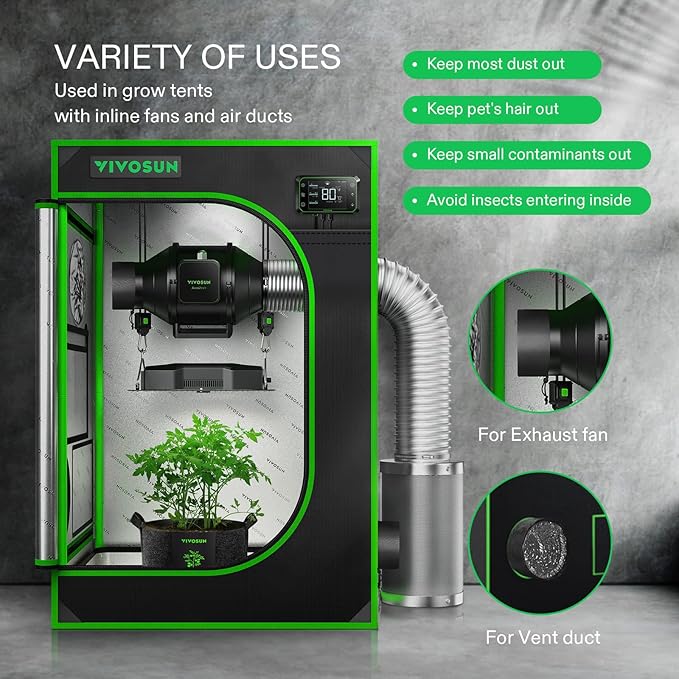 - Variety of Uses: This tent vent cover can be used in grow tents with inline fans and air ducts; It also avoids shrinkage of the tent fabric caused by the difference in air pressure between the inside and outside of the tent