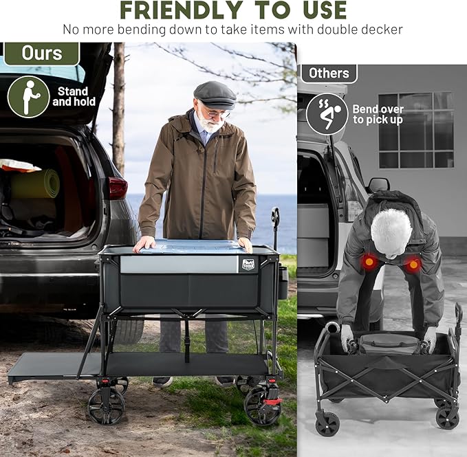 TIMBER RIDGE 400L Large Capacity Folding Double Decker Wagon with Brakes, 54" Extra Long Extender Wagon Cart, 450lbs Heavy Duty Collapsible Cart, All-Terrain Big Wheels for Camping, Sports, Shopping