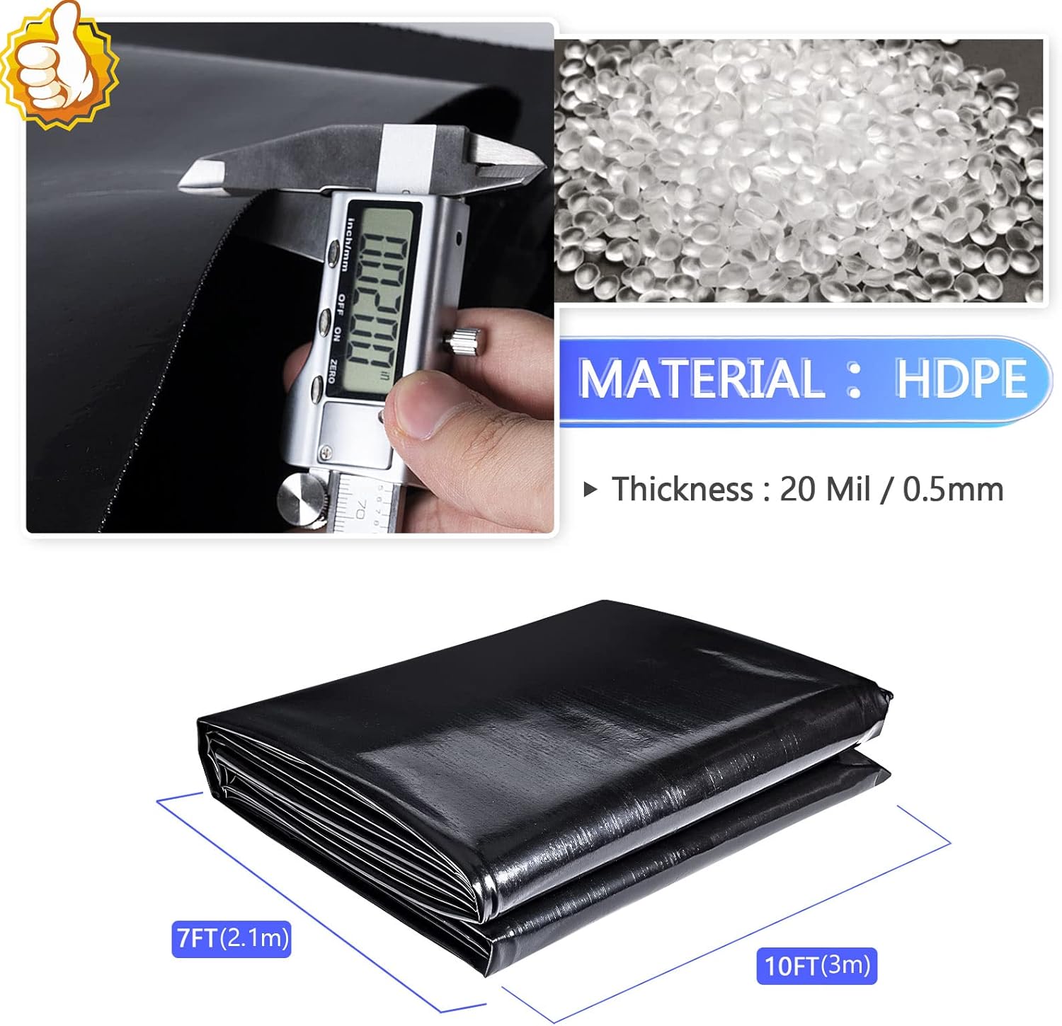 ToLanbbt Pond Liner 7 x 10 Ft, 20 Mil HDPE UV Resistant Preformed Pond Liner Easy Cutting, Underlayment for Fountain, Waterfall, Koi Pondsand Water Garden (Black)