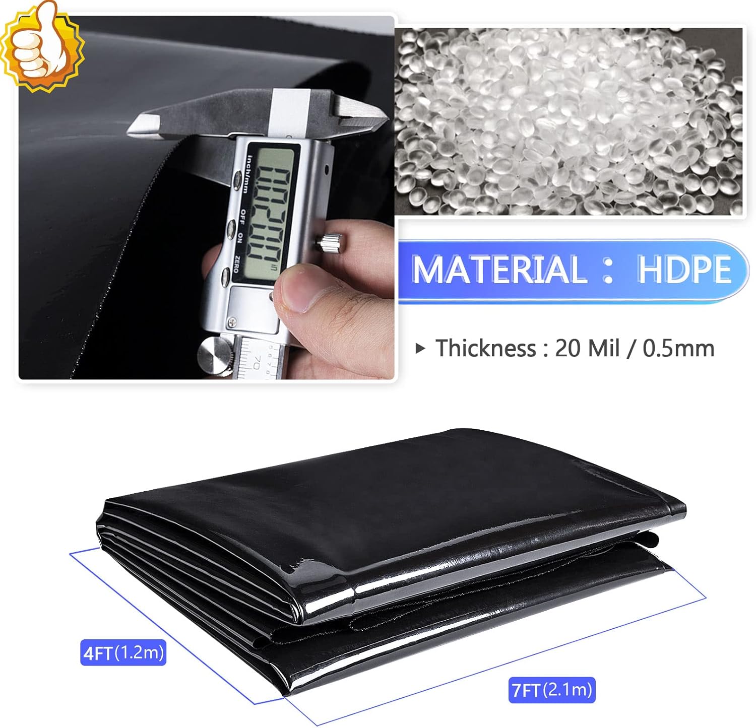 - [Safety Material] Koi Pond Liner is made of HDPE material, it has good softness, extensibility, 20 mil thickness liner is UV and puncture resistant, contains no plasticizers that can be used in outdoor ponds for a long time.