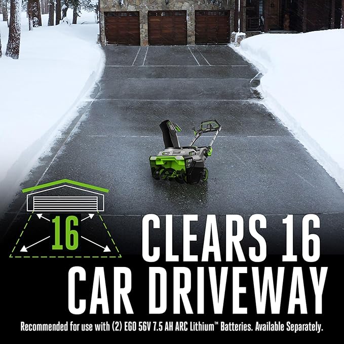 - Clears a 16-car driveway with 8 inches of snow on a single charge when used with the two recommended 7.5Ah ARC Lithium batteries (available separately)