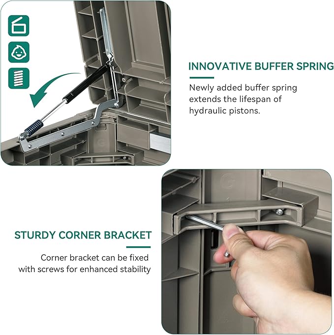 - INNOVATIVE HYDRAULIC PISTONS- newly added buffer spring prolongs hydraulic pistons’ life span; Easy lift and soft close mechanism allows the top to completely open and shut slowly with minimal effort