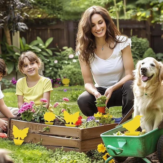 - [4 Shapes + Extra Little Shovel and Strips] Comes with 36 traps of 4 natural designs that are in the shapes of: birds x18 pcs, butterflies x18 pcs, sunflowers x18 pcs and roses x18 pcs. Also comes with an extra little shovel for digging inside pots to put the trap in. The strips can be used to go through the hole on the trap and tied to hang it on a branch or leaf. 24/7 US Customer Service, free return or refund.