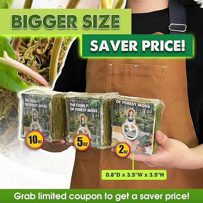 - ππ ππππ πππ πππππππ πππππππ: If you are looking for a drainage medium soil for your indoor plants but still moisture. DUSPRO forest moss is exactly what you want. Made of 100% dry forest moss holds an adequate amount of moisture to meet the plant's needs, yet still allows the water to drain well. A pack contains 280 GRAM bulk moss (= approximately 10 oz)