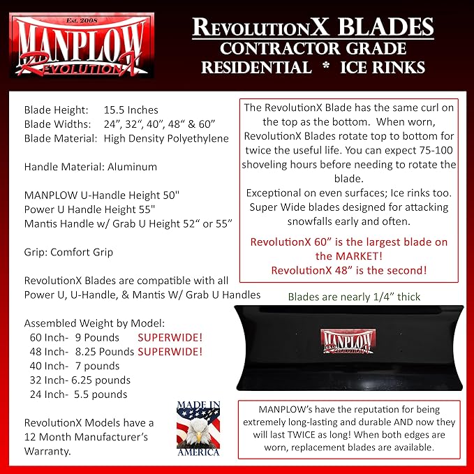MANPLOW RevolutionX Snow Pushers and Shovels (Power U Handle, 48")