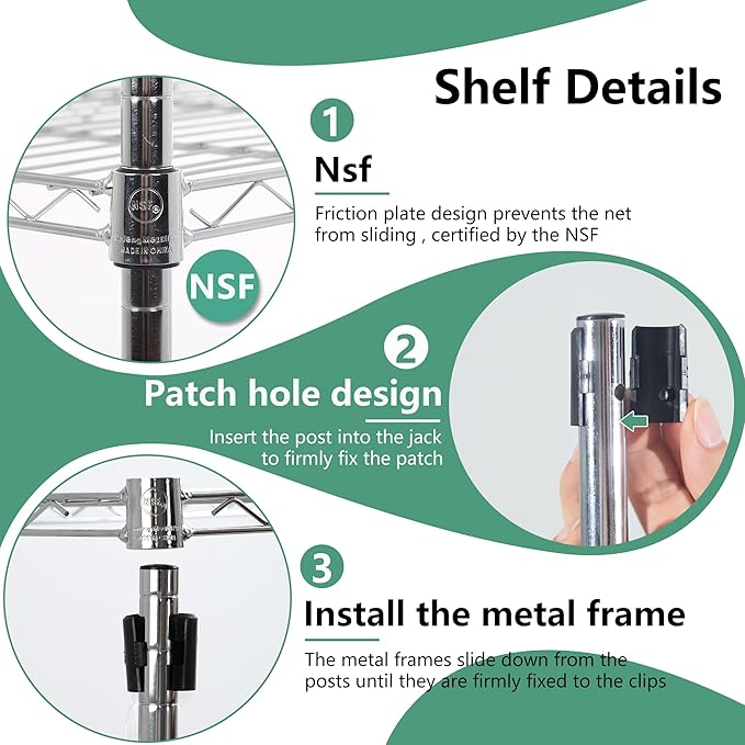 - ✔【Sturdy Leveling Feet】 This 5-tier storage shelving unit is supported by sturdy leveling feet. Its non-slip grip provides durable positioning for stable storage space.