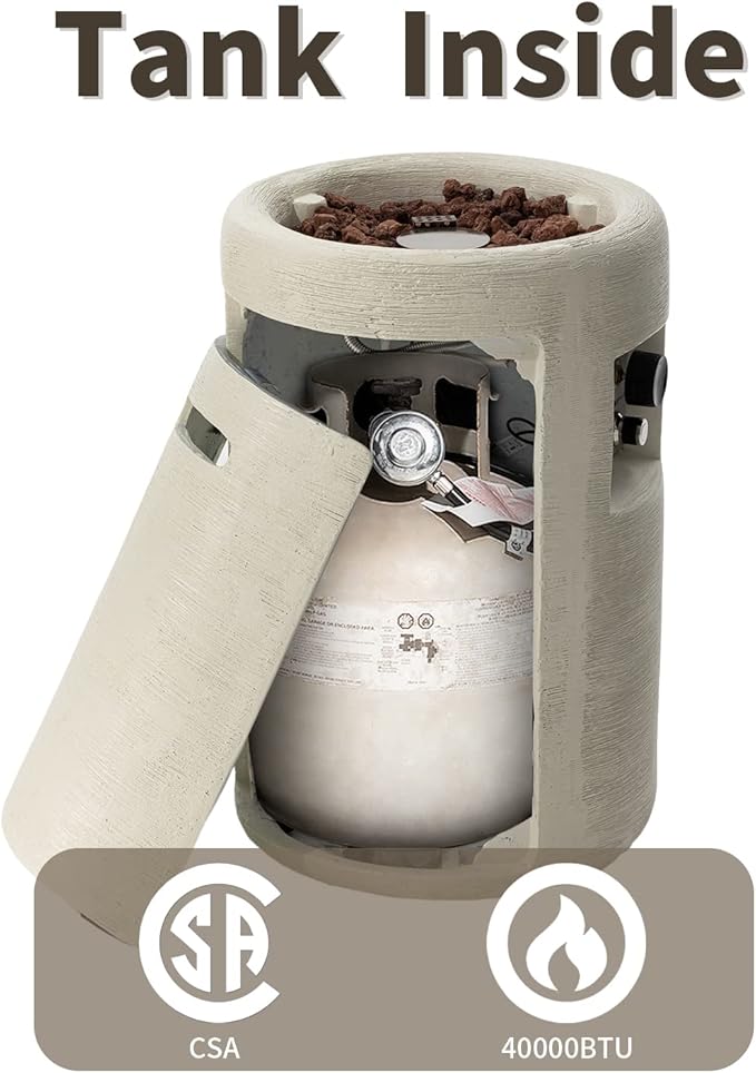 - ✅【 Unique Craftsmanship & Design 】 - The propane column is made of sturdy concrete, spraying magnesium oxide on surface to protect from cracking. The internal burner is made of stainless steel for a longer working and evenly heated.