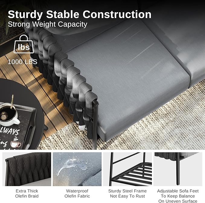 - PREMIUM MATERLIAL FOR LASTING USE: Our patio sofa is braided from delicate Olefin wide rope and has a strong visual sense and good comfort.