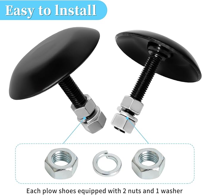 - Package included 2 X heavy duty skid shoe, each shoe comes with 2 nuts and 1 washer. Easy to install.