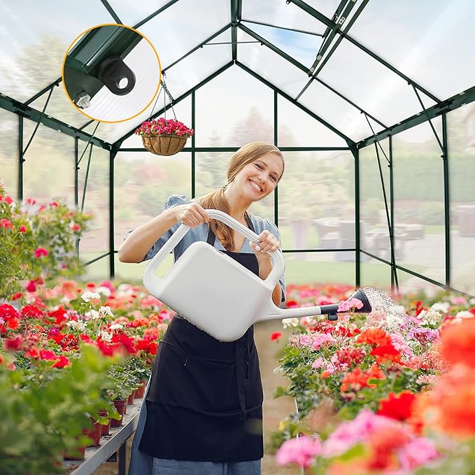 - ADJUSTABLE ROOF & ROOF HOOK: This aluminum frame greenhouse features 4 roofs vent with 4 adjustable angles for getting continuously fresh air to your plants. The built-in roof hooks provide more space for hanging pots.