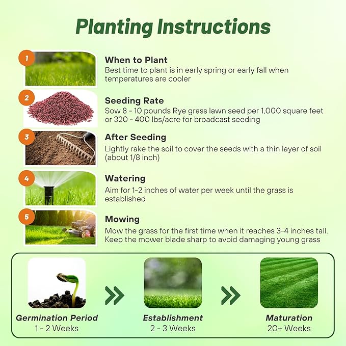 - PREMIUM RYEGRASS SEEDS: This premium 50/50 blend of Fireball and Hatrick ryegrass seed is engineered to deliver a lush, dark green, carpet-like lawn. The OptiGrowth coating is a standout feature, ensuring uniform seed distribution, enhanced soil contact, and superior moisture retention. This coating drives faster germination and more thicker and robust lawn establishment.