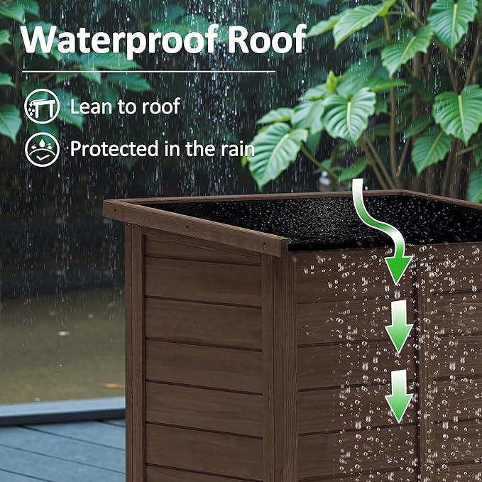 - Fir Wood: The outdoor storage cabinet is made of high-quality pure fir wood, and the exterior has been polished to express a rustic style. Medium brown blends easily with other décor and natural settings.