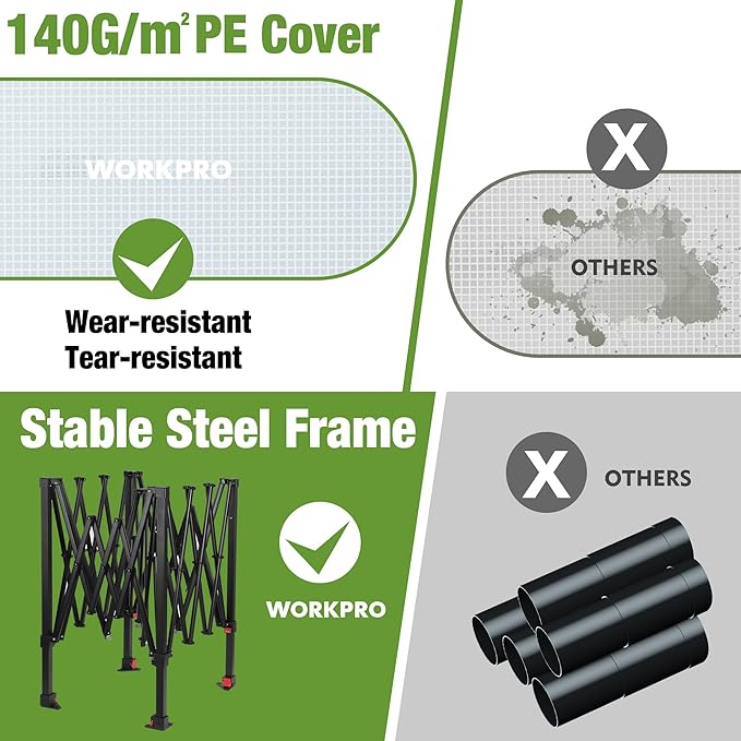 - Spacious Walk-In Greenhouse: Our WORKPRO greenhouse for outside is 94 L x94 W x99 H inches, with three height adjustments of 91, 95, and 99 inches, which can provide more than enough space for your plants to grow, and you can move freely and easily