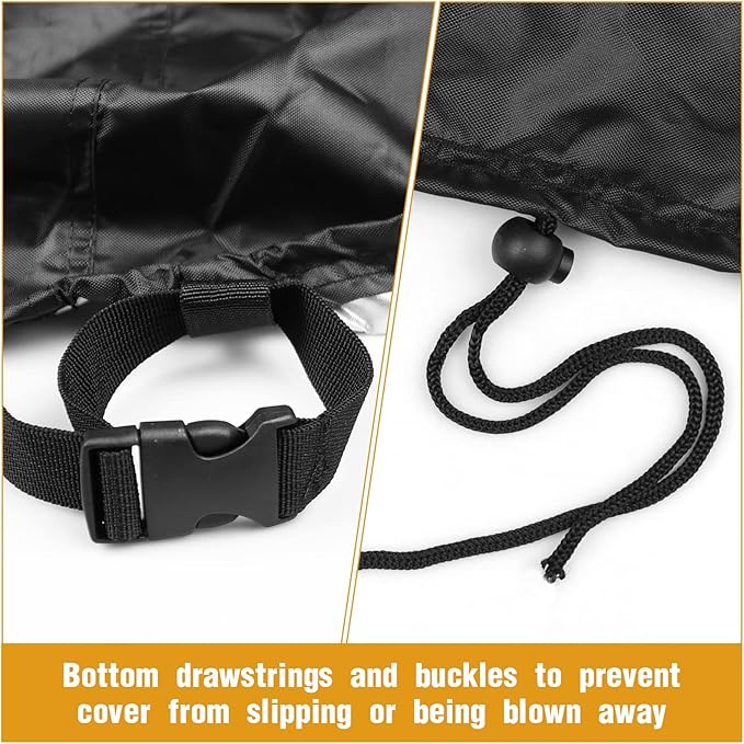 - ADJUSTABLE STRAP: The adjustble straps with buckles and drawing string at the bottom can flexibly adjust the tightness of the cover so that it can sit and stay firmly over your outdoor bar table, preventing it from being blown away by the wind.