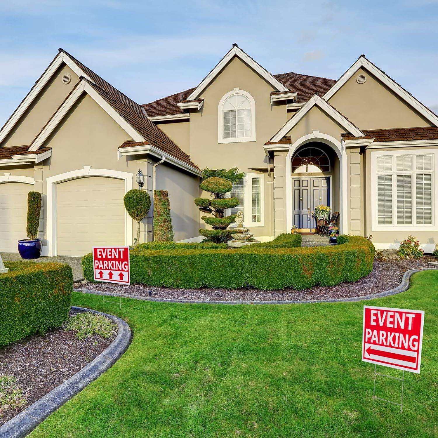 - Easy to Install: parking sign with arrow is easy and convenient for you to use, you just need to insert the H shaped stakes into the parking signs for event and then into the ground to display, you can finish the installations in second, saving your time and energy