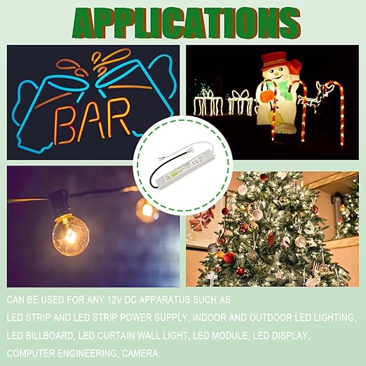 - 【Applications】LED strips and LED strips power supply, indoor and outdoor LED lighting, computer engineering, LED billboards, LED curtain wall lights, LED modules, LED displays, cameras and any 12V DC LED string lights.