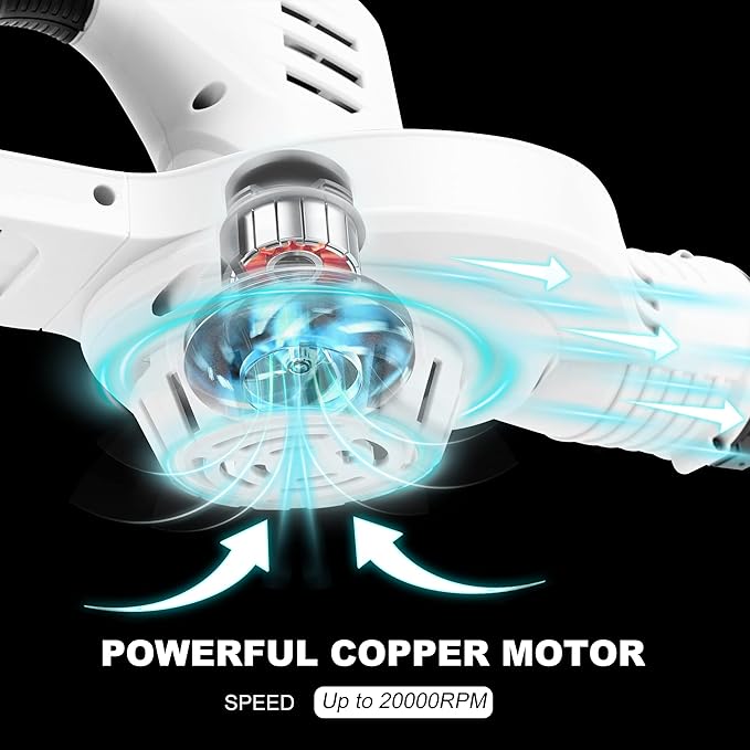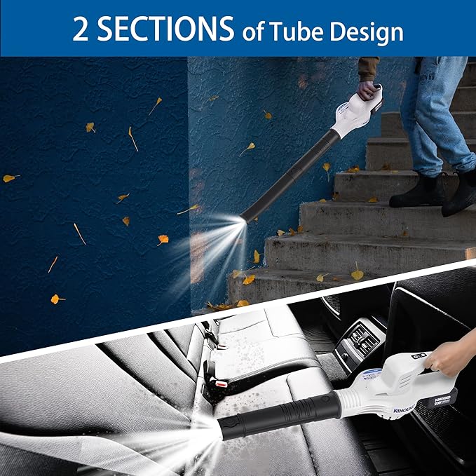 - 【Super Light and Compact】- Lightweight design makes it perfect for one-handed operation for easy maneuverability. Weighs only 2.7 lbs and features an ergonomic body that naturally moulds to the direction of blowing, you will experience 30% less user fatigue during operation. The upgraded rubber grip of the leaf blower is not only non-slip when used, but also provides you with just enough support to make your work easier. A detachable tube is convenient for storage and easy cleaning.