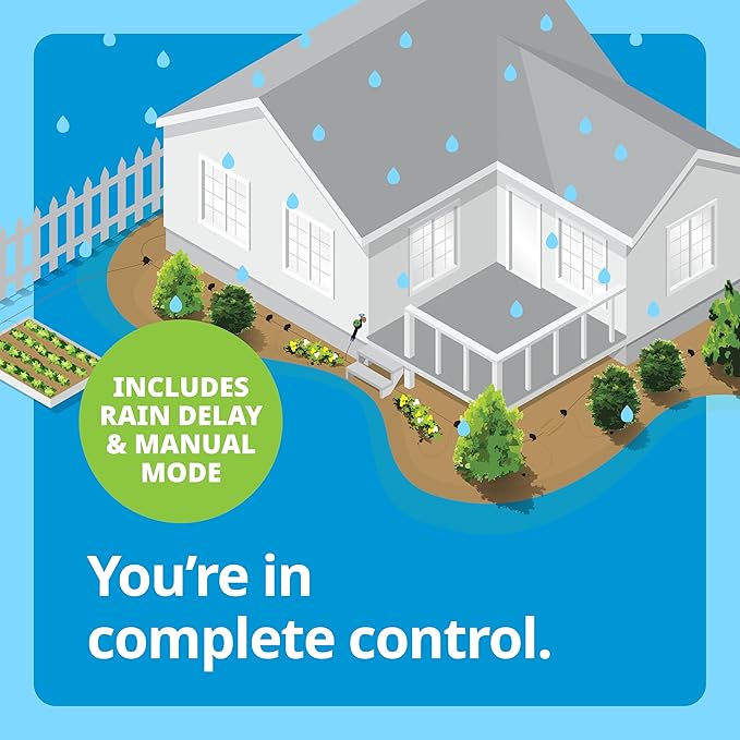 - BUILT TO LAST: Built for durability, treated with UV inhibitors, and is tamper-resistant; ready to start with preset schedule. View battery life on screen; when batteries run out, the unique water-saving feature shuts off valve to stop the flow of water