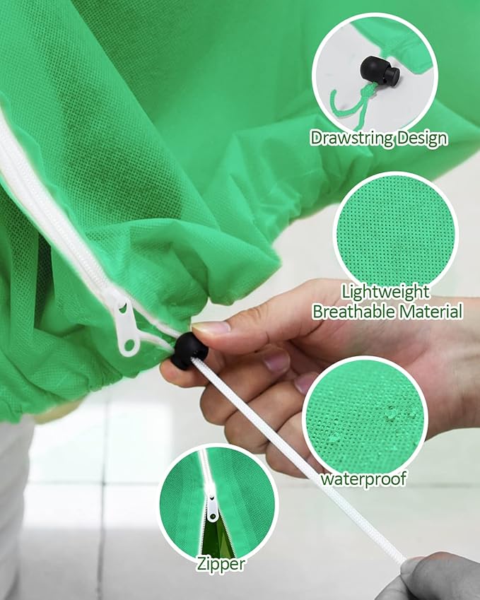 - SIMPLE DESIGN, CONVENIENT USE: The simple zipper and drawstring design makes it easy to put on and take off the plant frost blankets from outdoor plants, whether it's a quick cover before a heavy snowfall, or a meticulous inspection after the sun comes out, it is convenient to operate