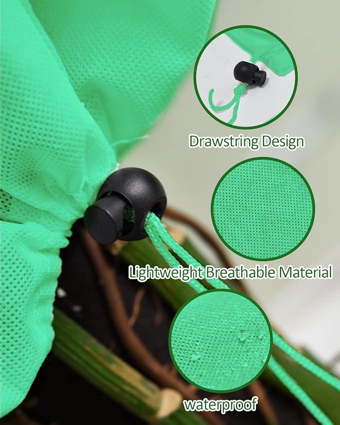 - SIMPLE DESIGN, CONVENIENT USE: The simple drawstring design makes it easy to put on and take off the plant frost blankets from outdoor plants, whether it's a quick cover before a heavy snowfall, or a meticulous inspection after the sun comes out, it is convenient to operate