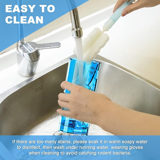 - Reusable and Easy to Clean: Mice trap can be cleaned and reused as many times as needed. The live mouse trap is waterproof and can be easily washed.