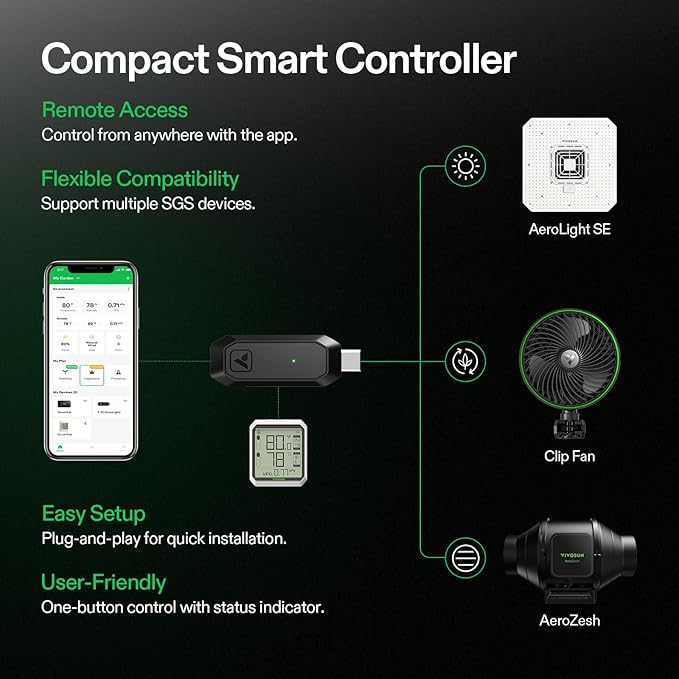 - The GrowHub E25: Connect with the Vivosun Smart Grow System, allowing you to monitor and control the AeroLight by the Vivosun App; connect a wide range of equipment and design Grow Recipes that will take your plant from seed to harvest automatically