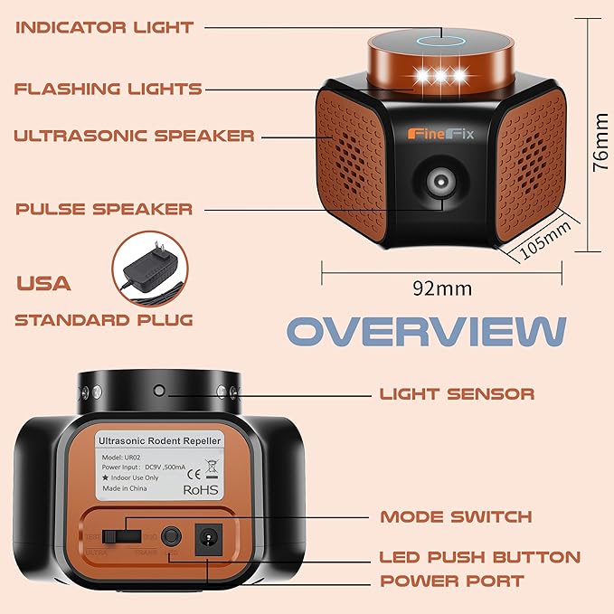 - VERSATILE 4 MODES SOLUTION: FineFix ultrasonic mouse repellent plug in is a modified ultrasonic pest repellent ultrasonic plug in device with 4 specialized modes designed to combat different types of pests. From the Test mode for ultrasound verification to the ULTRA, TRANS, and DUO modes, these electronic mouse repellent devices ensure your living space is fully protected and that there are no creepy crawlies invading your sanctuary.
