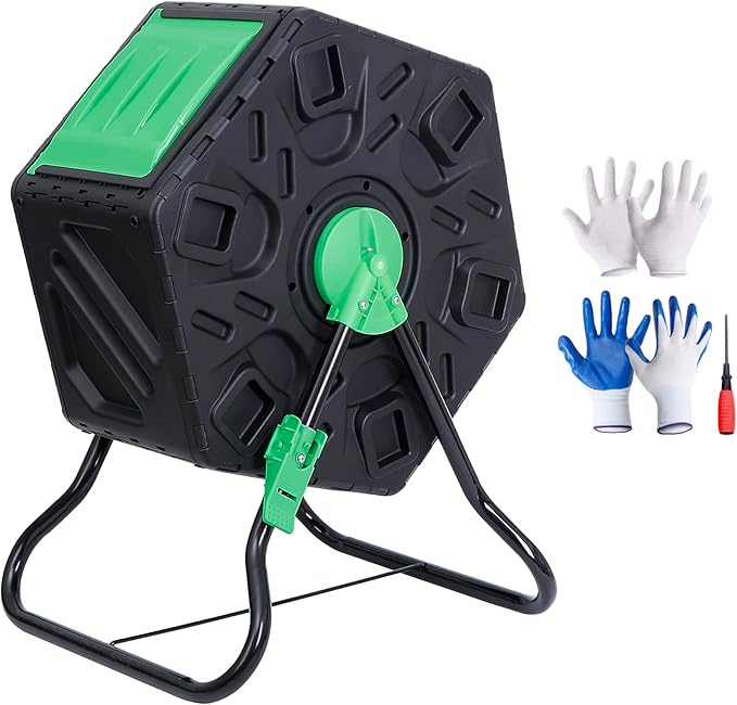 - 【Easy to Rotate and Assemble】 This rotating waste bin is easy to rotate, our tumbler system just ask you add your scraps and turn the handle 5-6 times every few days which is high-efficient. And the product is easy to assemble, just half an hour or less, manual with installation steps in every package, a pair of gloves and screwdriver included