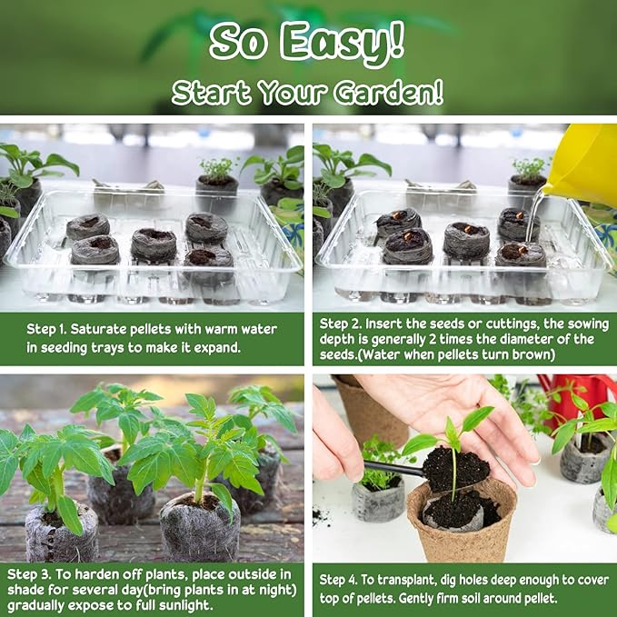 - Wide Application: Seeds starter pellets are great for starting your veggies, garden plants indoors or outdoors, such as tomatoes, peppers, evening primrose, making your seedling work easier and lower cost; You can also plant it with your kids, especially for gardening and growing enthusiasts