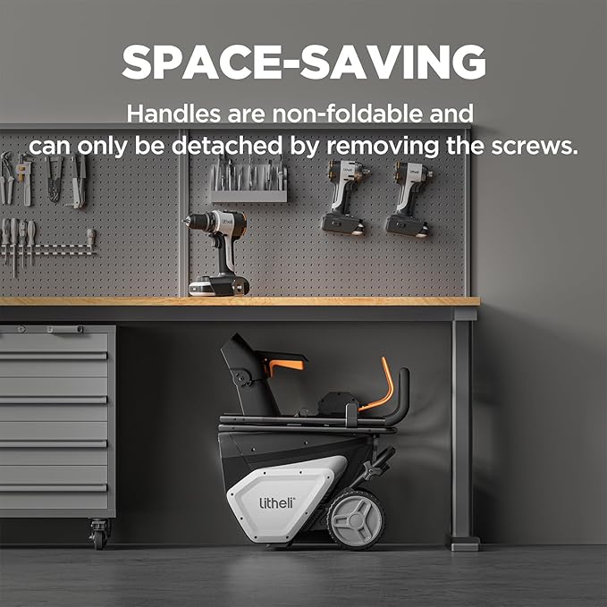 - 【SPACE-SAVING DESIGN】Designed with a collapsible handlebar, this snow blower can be easily disassembled and folded, allowing for effortless storage during the off-season.