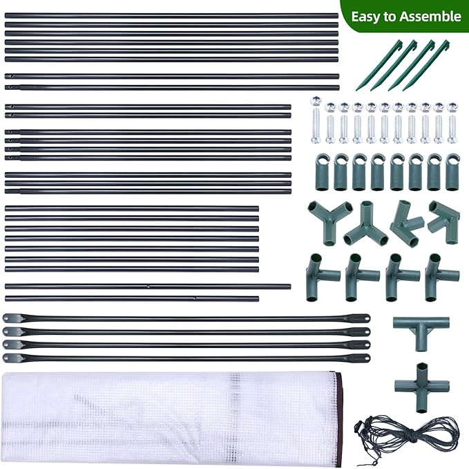 - Tough & Durable: The 130g/m2 PE mesh cloth is tear resistant, waterproof, wear resistant, corrosion resistant and UV resistant. The 0.63inch/16mm tubes are well connected with PP plastic joints. The 7 rods on the top of the greenhouse provide the best solution to snow/water accumulation. For added toughness and stability, the side, back and doorways are reinforced with connection rods